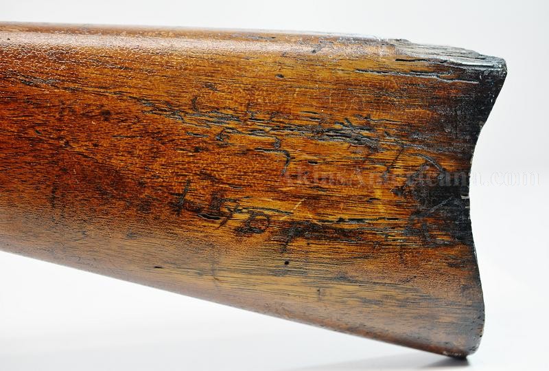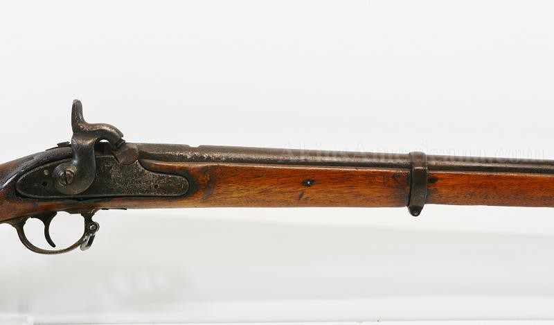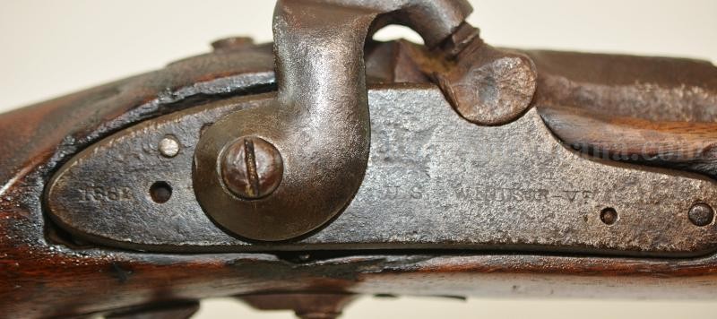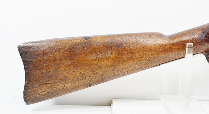 This is an L.G.&Y. marked contract special model 1862 percussion rifle musket. L.G.&Y. stood for the firm of Lamson, Goodnow and Yale, who had forges at Windsor, Vermont. They were contracted to produce to produce 50,000 Springfield Model 1861 muskets in 1861. The contract produced the required number of muskets between 1862 and 1864. The overall length of the musket is 55 3/4" with the barrel measuring 40". The .58 caliber bore is dark and rusty, but the rifling is still visible. The exterior of the barrel is pitted around the breech, more so around the bolster. There is also a little pitting on the muzzle end on the right side. The barrel has a dark chocolate patina. There are no visible markings on the barrel. The front blade sight is still present but the rear two leaf sight is missing. The lock plate is dated 1862 behind the hammer and has a small eagle motif over the letters US in front of the hammer, along with L.G.&Y./WINDSOR-Vt. below the eagle. The action is very crisp and locks in both half and full cock positions. The hammer snaps forward when the trigger is depressed. The lock plate is lightly pitted and has a dark appearance, but the stamps are visible. The trigger and trigger guard and barrel bands are original. The stock has been sanded and refinished. There are letters scratched into the left stock comb, looks like the name white, but it's hard to make out. The butt plate and ramrod are missing. The nose cap and both sling swivels appear to be modern day replacements. This could make a nice weapon for display with just a little help, or possibly become a reenactors rifle. With a little work, or as is, this is a nice example of an uncommon Civil War long arm.