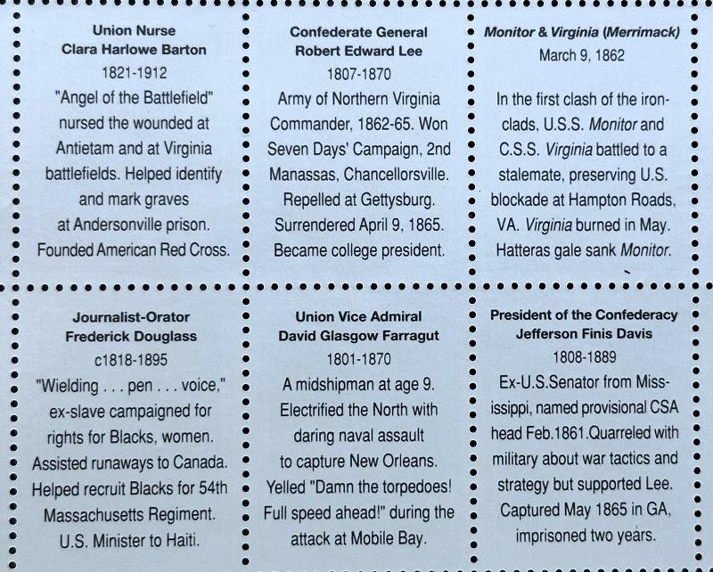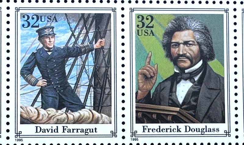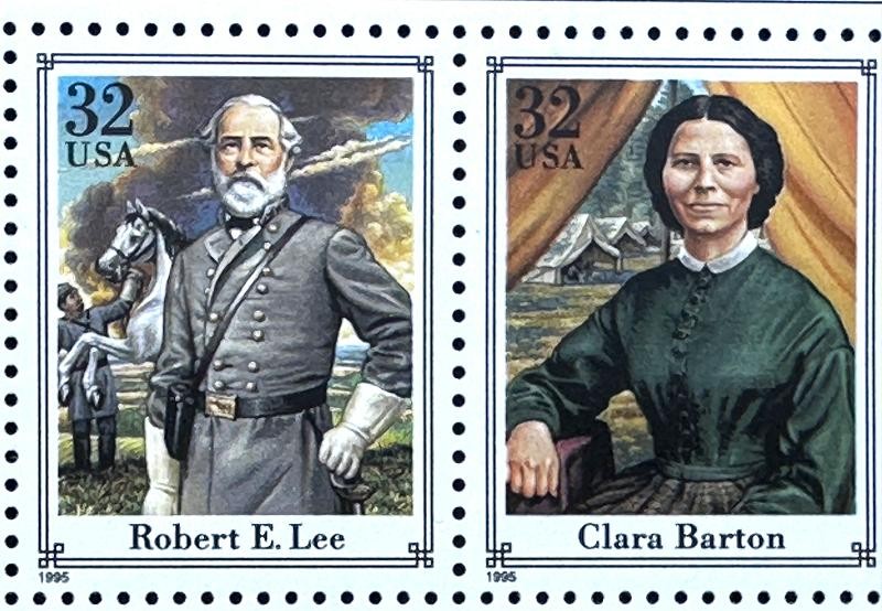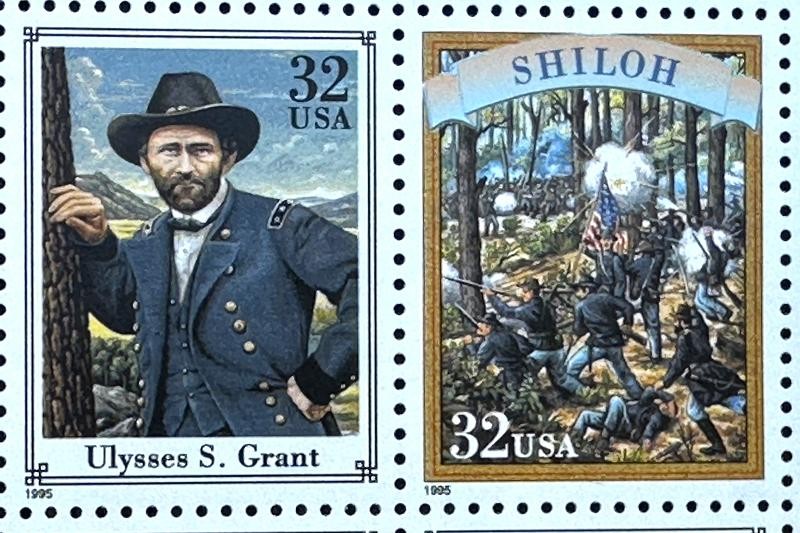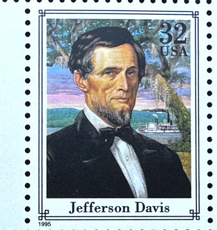 This is a commemorative stamp set of the Civil War commissioned by the United States Postal Service in 1995. The stamp set was issued on the 130th anniversary of the American Civil War. This set of stamps was the second pane in the Classic Collection series, and was declared the most popular stamps of 1995 by the USPS. The stamps feature the artwork of Mark Hess. Hess had produced the artwork for the stamps of the Legends of the West series prior to the Civil War series. The sheet features the presidents of the opposing countries, Abraham Lincoln of the United States of America and Jefferson Davis of the Confederate States of America. The commanders of the armies, Grant commanding the Union Army and Lee commanding the Confederate Army. There are political figures, activists, women pioneers, prominent Union and Confederate generals and admirals and four major battles. The stamps are of the 32 cent denomination and have never been removed from the sheet. The front of the stamp features the colorful artwork of Mark Hess, the reverse has a brief bio of each person or battle. This commemorative stamp set would look great framed and would add some color to your war room!