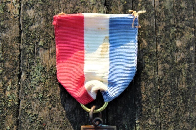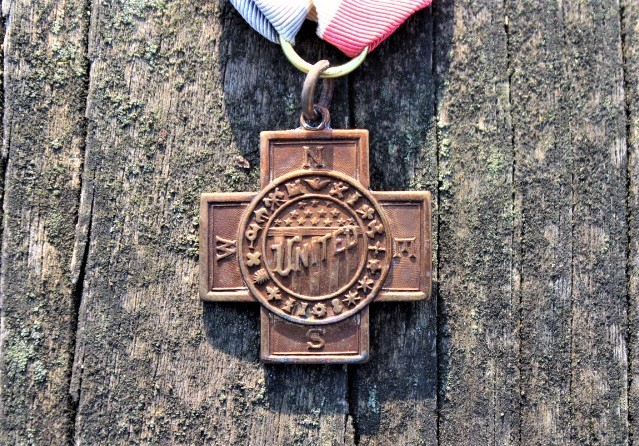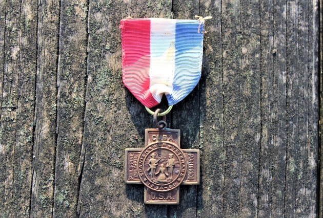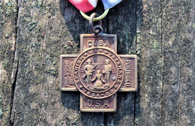 The United Spanish War Veterans organization was the result of three large Span-Am veterans groups merging in 1904. It's members were veterans of the Spanish American War, Philippine American War and the China Relief Expedition. This USWV medal is a souvenir badge for veterans attending one of the USWV reunions from an unknown date or location. The badge is 3 1/4" tall and is missing the hanger. A red, white and blue ribbon was suspended from the hanger. It is faded and unsewn at the top. Suspended from the ribbon is the United Spanish War Veterans emblem of a cross with a disc centered in the middle. While this one is missing the hanger and has a problem with the ribbon, it's still not one you run across everyday.