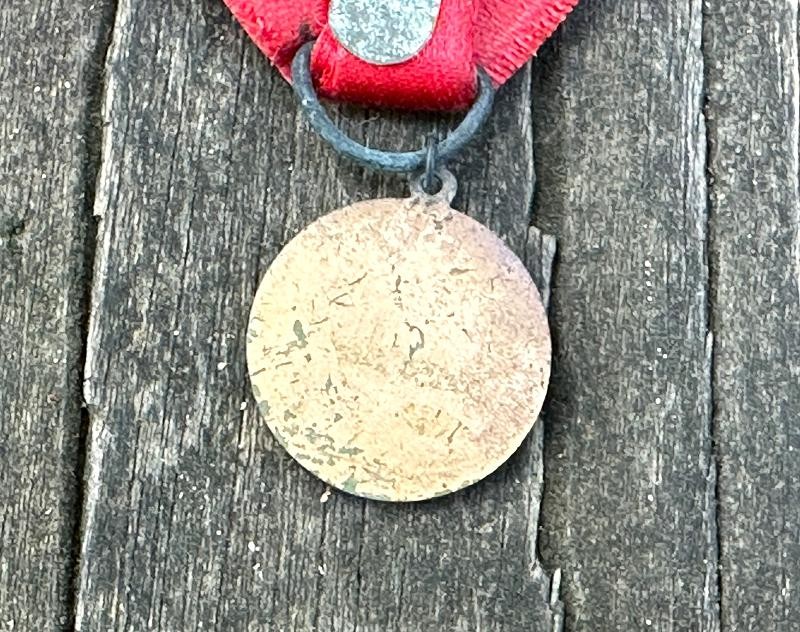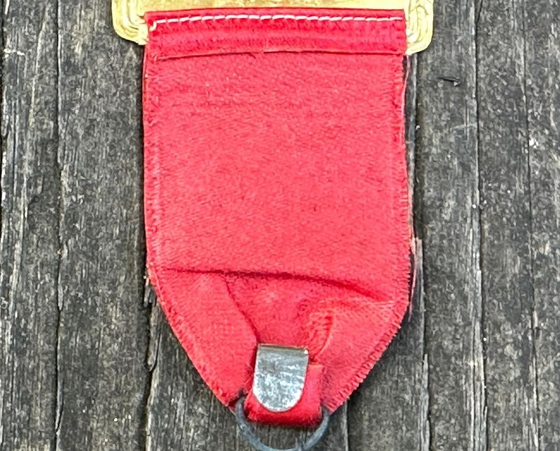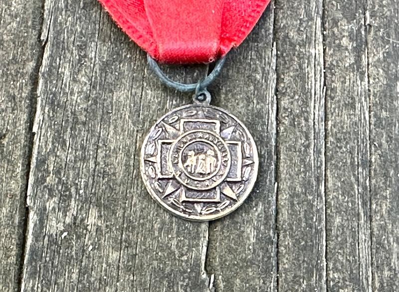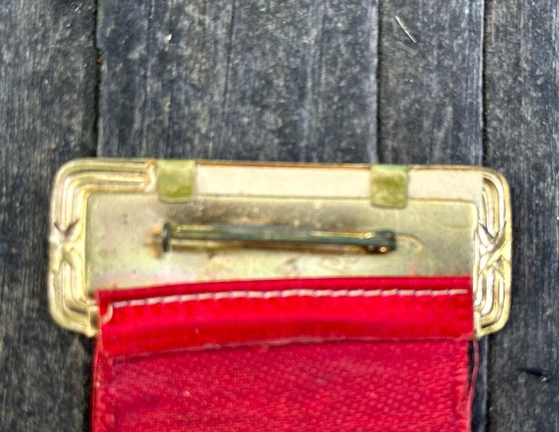 The United Spanish War Veterans organization was the result of three large Span-Am veterans groups merging in 1904. It's members were veterans of the Spanish American War, Philippine American War and the China Relief Expedition. This USWV medal is a complimentary badge for veterans attending the 28th Annual Encampment held at The Dalles, Oregon. The badge is 4 1/2" tall, with the hanger being 2" wide. The hanger is made to accept a small cardboard or paper insert with the wearers name on it. Suspended below the hanger is a red ribbon with 28th ANNUAL/ENCAMPMENT/U.S.W.V./DEPT. OF OREGON/THE DALLES/93 in gold printed on it. Suspended from the ribbon is the United Spanish War Veterans emblem of a cross with a disc centered in the middle. The ribbon is in very good condition, having no splits, rips or frays. There is no maker mark on the back of this one. This is a harder USWV badge to come by, and will make a great addition to your USWV reunion collection.